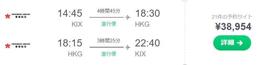 こちらは関西空港から香港空港へのHX619便レビューです。