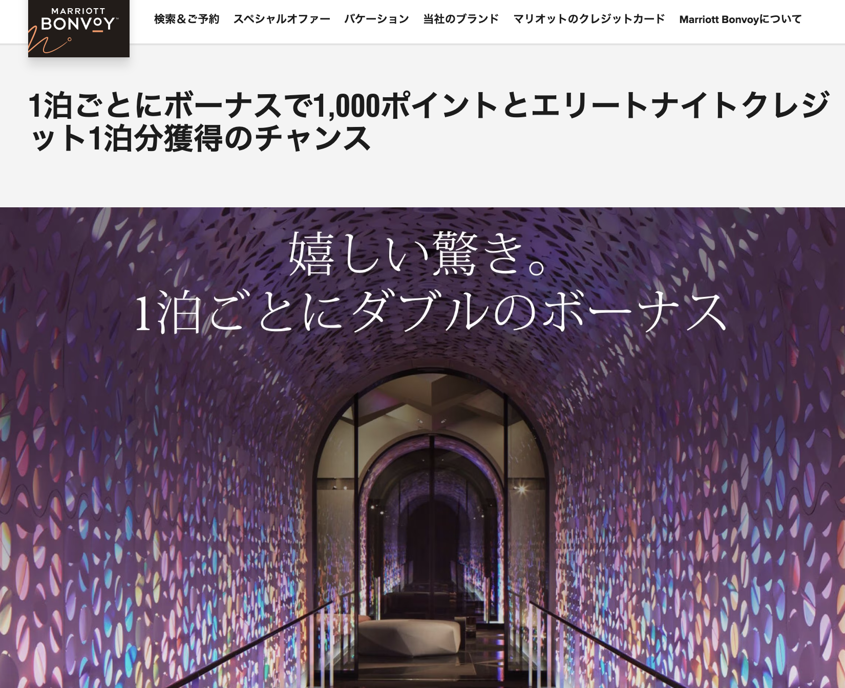 1泊ごとにボーナスで1,000ポイントとエリートナイトクレジット1泊分獲得のチャンス