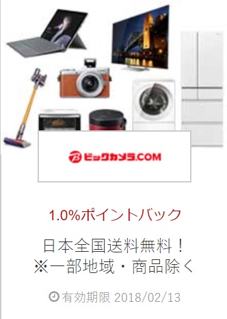 例えばビックカメラも案件として扱われていますが、このリーベイツ経由で3,000円以上の買い物をすればキャンペーン対象となります。