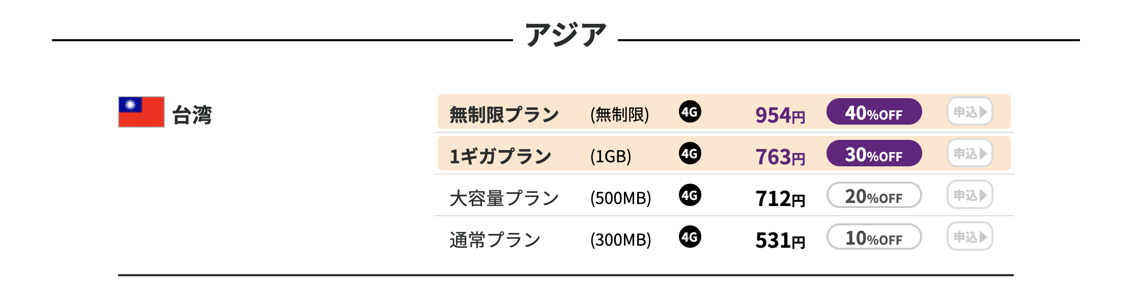 2019年9月現在ではレンタル料最大40%OFFになるキャンペーンを実施しており、台湾の無制限プランが1日1,000円未満でレンタルすることができてしまいます。もちろん通常プランや大容量プランはもっと安くレンタルできます。