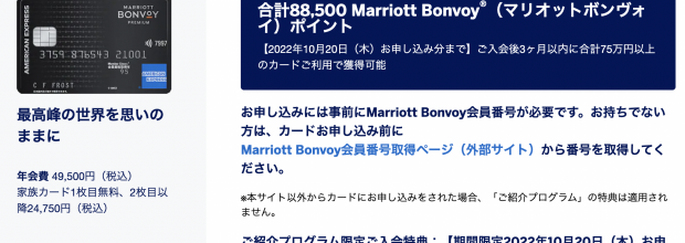 先日2022年02月08日、マリオットからSPGアメックスカ … 続きを読む Marriott Bonvoyアメックスの紹介キャンペーンがお得!最大45000ポイントが貰える