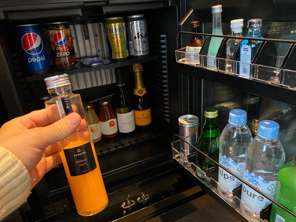 客室内にはミニバーが備え付けられていて、プラチナメンバーの場合、この中から3,000円分無料で楽しめます。
