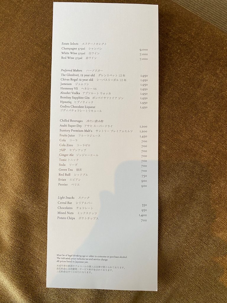 350mlの缶ビールですら1,200円ですから、良いお値段がしますね。ドリンク次第ですが、2杯から3杯は利用できるという認識です。