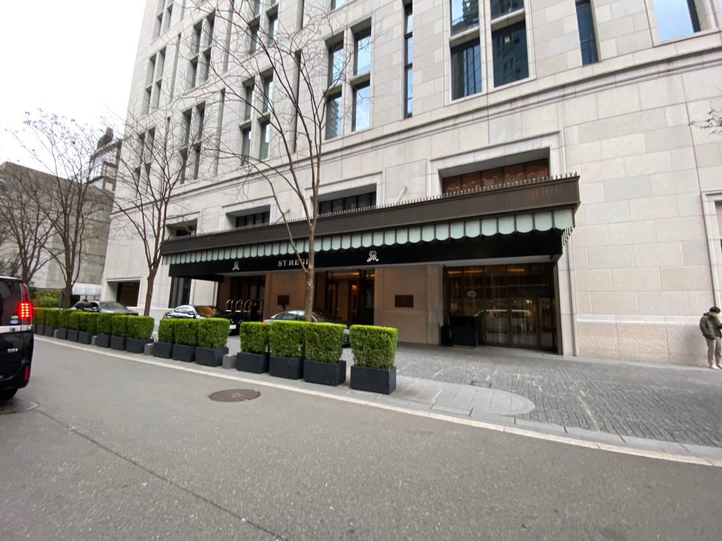 今回は、愛車でセントレジスに向かいました。エントランス前に車を停めるだけでスタッフが駐車を代行してくれるバレーパーキングです。駐車代金は1泊3,500円です。